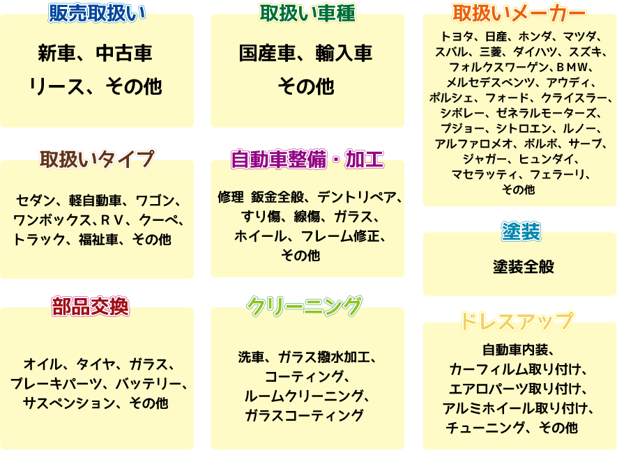 | ★業種 | カーディテイリング、カーフィルム施工、ガラスフィルム施工、自動車ガラス修理、 自動車ガラス販売、自動車修理、自動車鈑金・塗装、自動車部品・用品店、ポリマー加工 |