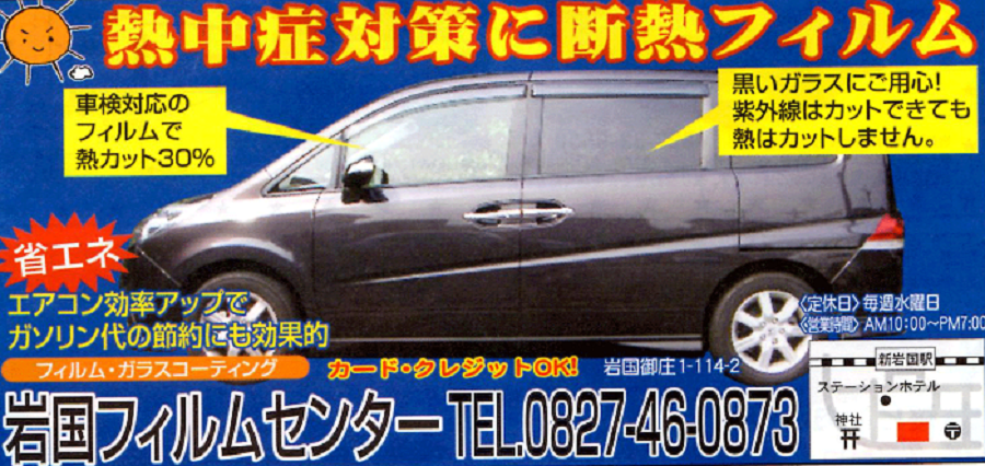 お客様のお車をお預かりしている間、無料で代車お貸し致します!! 事故・災害時のガラス飛散防止になります。 ![]() ※特殊構造のフィルムにより有害な紫外線をカットしますので、お肌の日焼け・シミ対策にも効果的です。